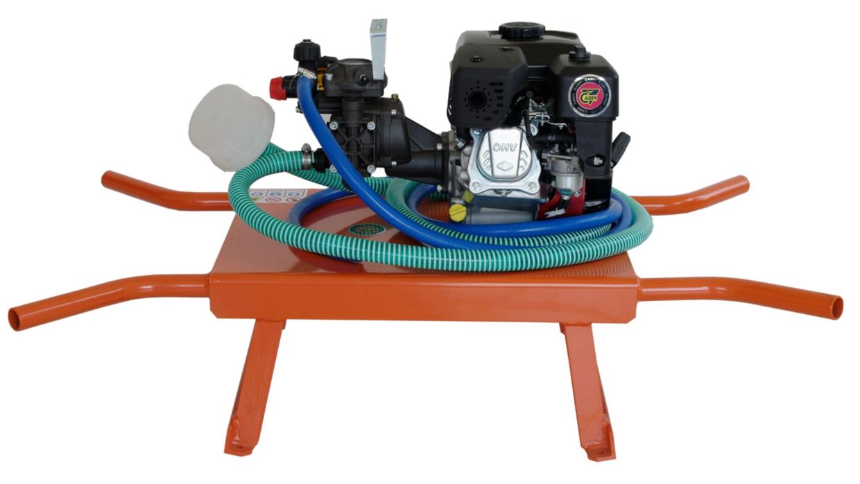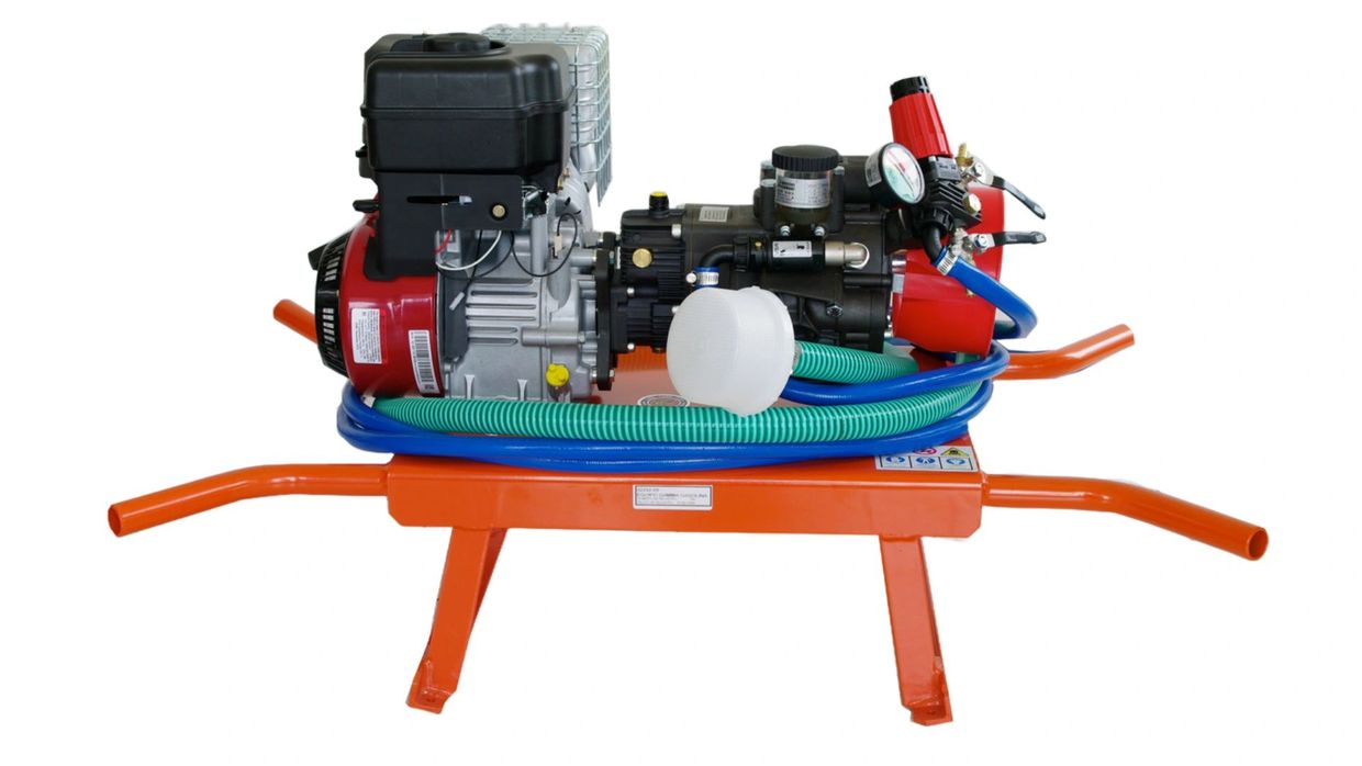 Equipo estacionario de alto rendimiento para trabajos exigentes. Bomba de diafragmas Annovi Reverberi AR-503 con caudal de 55 litros por minuto y presión máxima de 600 psi. Motor Briggs & Stratton de 8 HP a gasolina. Cuenta con llave reguladora de presión RM 40 para hasta tres salidas de manguera de 200 metros, manómetro en glicerina con sistema by-pass, mangueras de succión y retorno, y plataforma metálica reforzada con pintura resistente a agroquímicos. Garantía de 1 año por defectos de fábrica.
